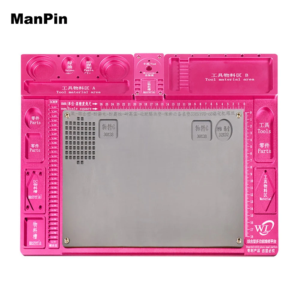 Special Offer Aluminum Alloy Microscope Base Soft Silicone Rubber Work Pad Heat Resistant Insulation Hot Air Gun Station Mat BGA PCB Soldering Discount 18% Today!
