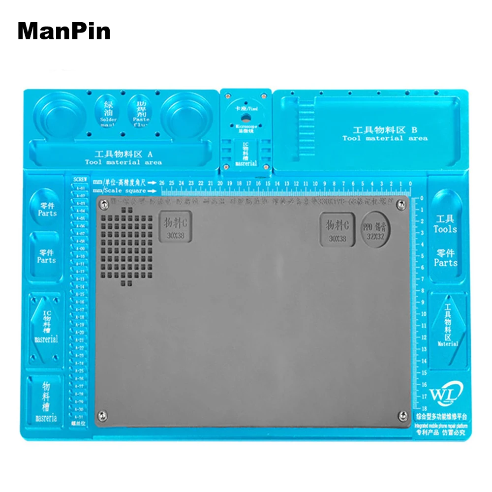 Product Name: Aluminum Alloy Microscope Base Soft Silicone Rubber Work Pad Heat Resistant Insulation Hot Air Gun Station Mat BGA PCB Soldering