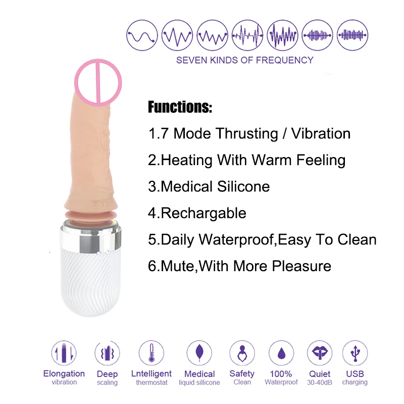 Product Name: Daily Waterproof,Medical Silicone,7 Mode Thrusting Vibration,Heating With Warm Feeling,Rechargable Sex Toys Dildos For Women
