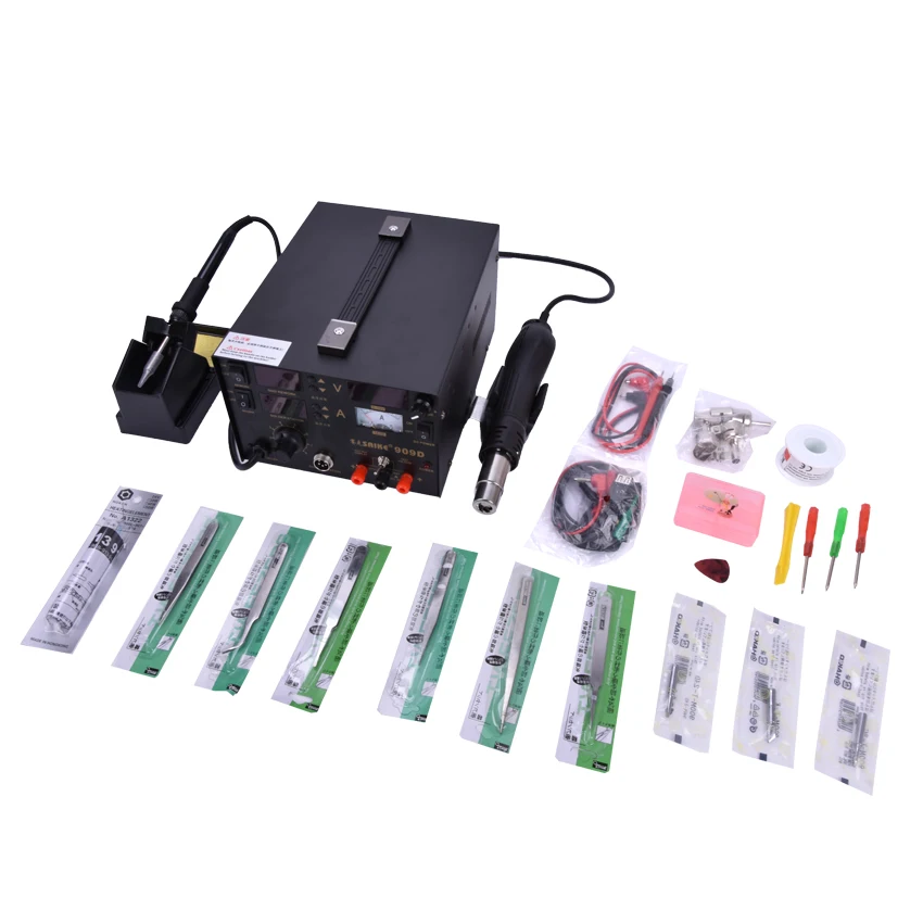 Special Offer 110V Or 220V Saike 909D 3 In 1 Heat Air Gun Solder Iron Soldering Station+Power Supply Discount 8% Today!