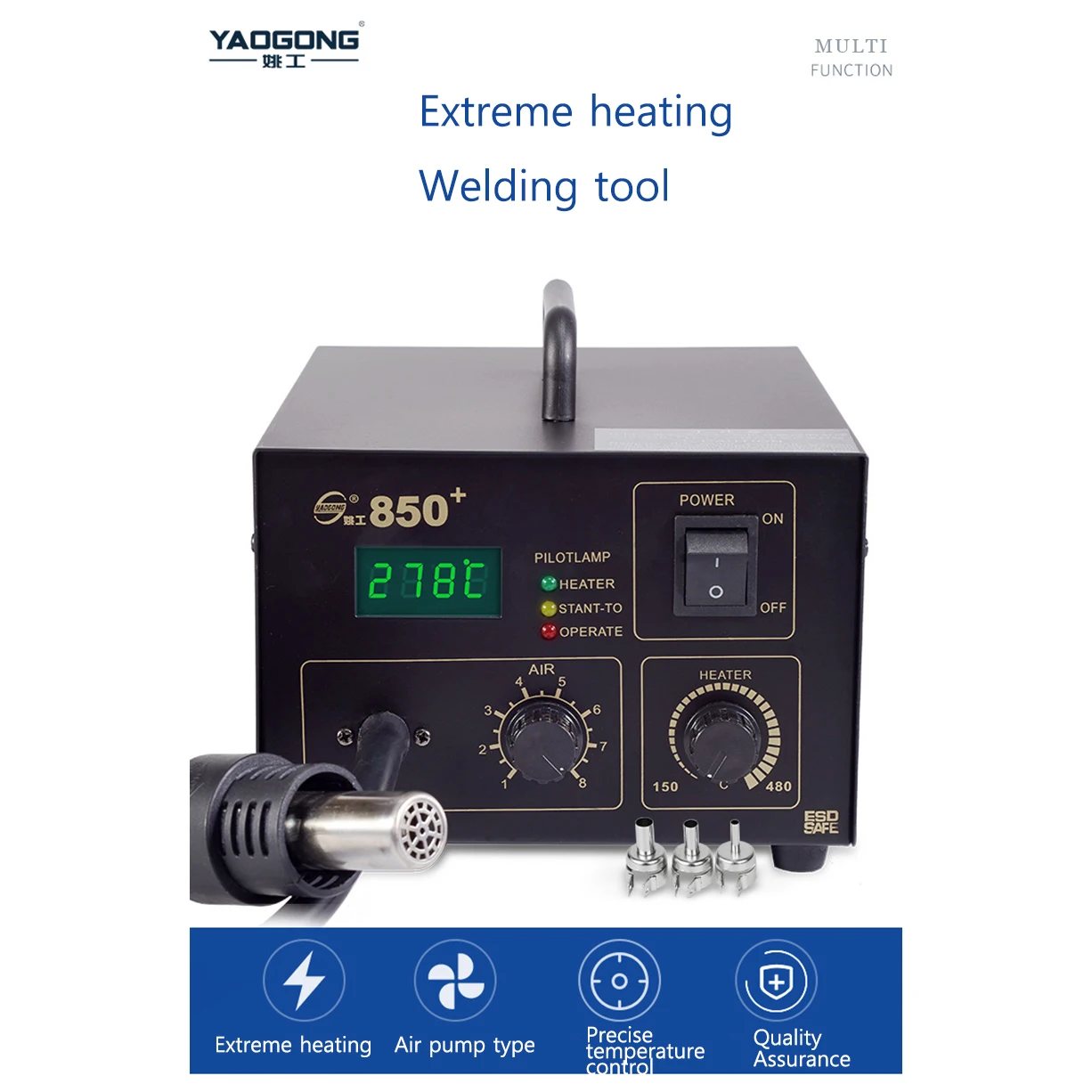 Product Name: YAOGONG 850+ Hot Air Soldering Station SMD Rework Station Lead Free With Heat Gun Free Shipping